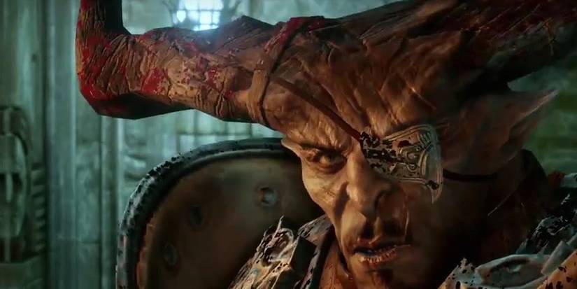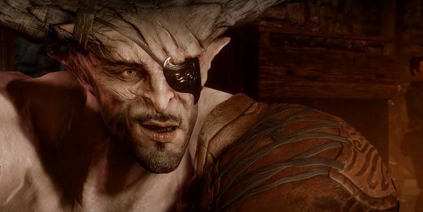 Upon meeting Iron Bull on the Storm Coast, players immediately notice that he's sporting an eyepatch. Krem - Bull's second in command - tells the story behind the missing eye in an optional conversation.