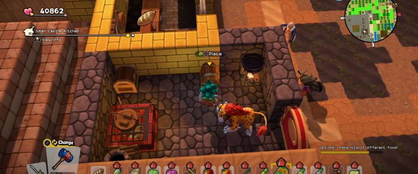 In Dragon Quest Builders 2, just like Dragon Quest Builders, the player may cook food through recipes obtained throughout the world. These recipes take ingredients, either one or more, and create dishes. The meals will heal a certain amount of Hunger and HP, as well as possibly have a beneficial effect on the player.