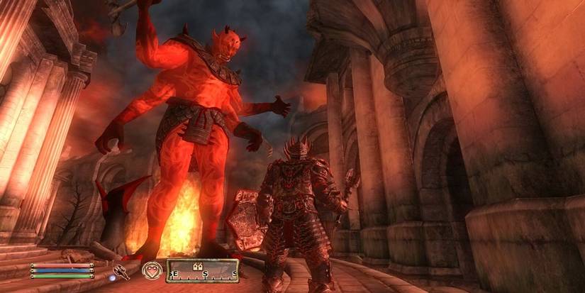 Mehrunes Dagon is perhaps most famously known for his appearance in The Elder Scrolls IV: Oblivion. It was in fact him who was behind the entire Oblivion Crisis, as he sought to open a portal in the Imperial City and launch an attack on mortals to finally gain control of what he believed was his.