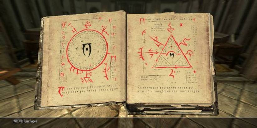 In Skyrim, the only hint of this famous book is located in Dawnstar and is being held by Silus Vesuius. He only possesses one page of the tome, which implies that it has been mostly destroyed or that someone had tried to burn it previously.