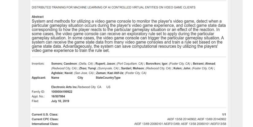 The patent is described as "training for machine learning of AI controlled virtual entities," with the crux supposedly surrounding AI learning from data gathered from real-life players. How EA's tech will do that is by allegedly detecting "when a particular gameplay situation occurs during the player's video game experience," and registering exactly how the player reacts. In turn, this will be used to "train a rule set based on the game state data."