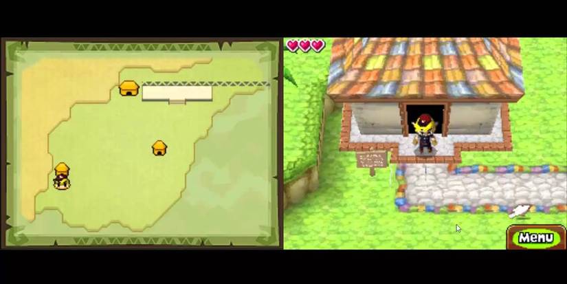 However, with a new game comes new mechanics, and with this one, Link has a talking cap named Ezlo, who can shrink them both down to a size of a Minish, a bug-sized race that lives in Hyrule.