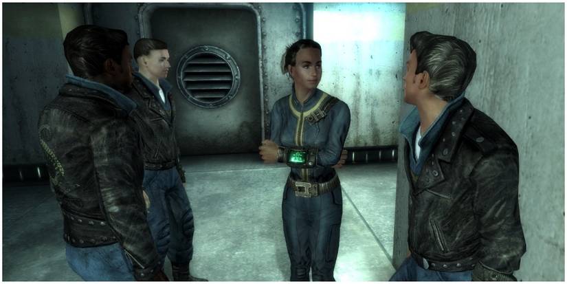 The Tunnel Snakes are a group of greasers that are found in Vault 101. The members consist of bullies Butch DeLoria, Wally Mack, and Paul Hannon. They can be spotted by the leather jackets they wear over their vault suits, which have a snake on the back.