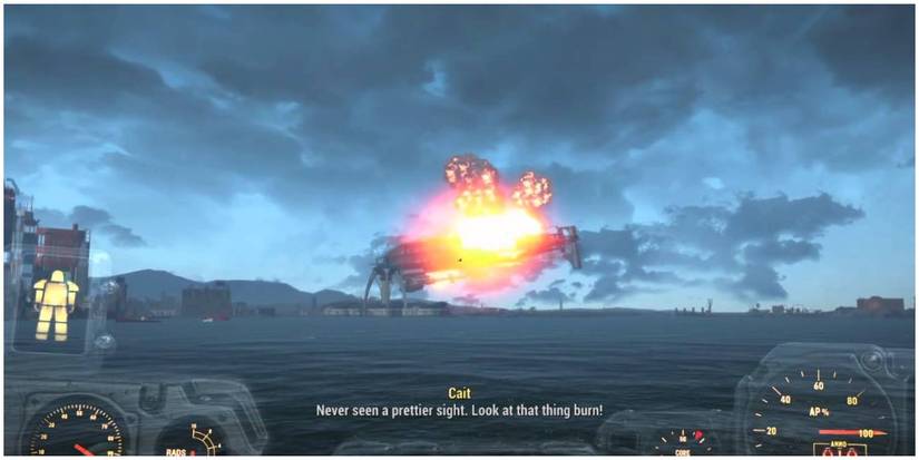 Players will be given explosions to set at important points in the airship. By wearing a Brotherhood of Steel uniform, the player is able to sneak aboard the ship and set the charges. After getting to a safe distance, they can watch as the airship comes crashing down.