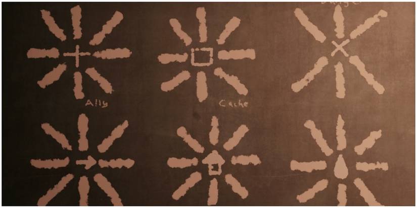 The Railroad uses symbols that are very similar to the Thieve's Guild symbols in The Elder Scrolls V: Skyrim. The symbols can mean there are allies nearby, there is a cache, or there is a safehouse close by. These symbols can be found across the Commonwealth and can come in handy for anyone who knows what the symbol means.