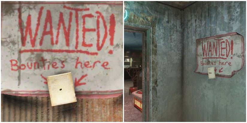 Players can find two different bounty boards in Diamond City. One is located in the Market Place near Swatters, while the other one is located near the entrance of the Dugout Inn. These quests are simple, having the player kill either a raider, Ghoul, or Super Mutant at a certain location.
