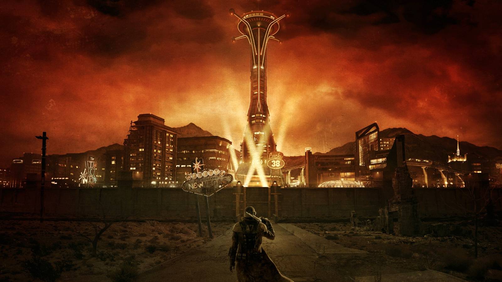 Old E3 footage and trailers show a Strip with no junk barriers blocking the street into two sections, and the famous junk walls that guard the Strip are replaced with concrete walls with sniper towers. There was also frequent mention of many more casinos residing in the zone, but the retail version of this zone only has 3 when not including The Lucky 38.