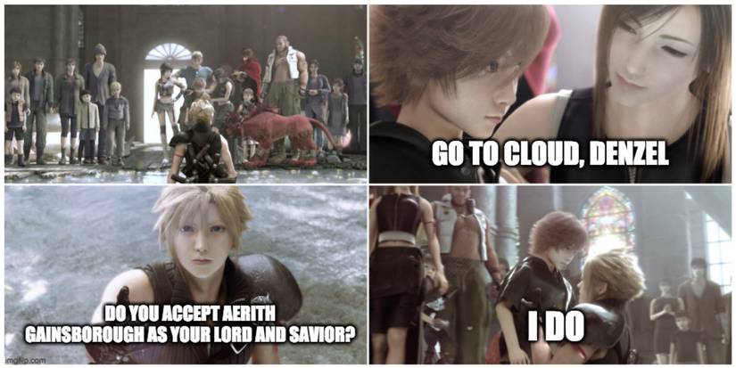 One of the strangest scenes in the whole film is when Cloud is essentially baptizing kids in the church pools. The reference could not be any closer to a religious analogy if they tried. Well, Aerith could have died on a cross, but besides that it is obvious.