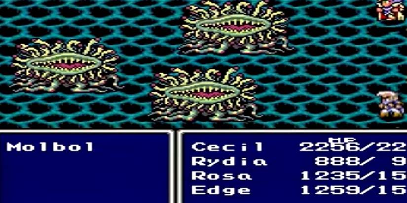 In early titles, Malboro commonly attacked in large groups, as seen above in this capture of Final Fantasy IV. However, their behavior changed in later games and they became largely solitary creatures, with players engaging with them as solo enemies.