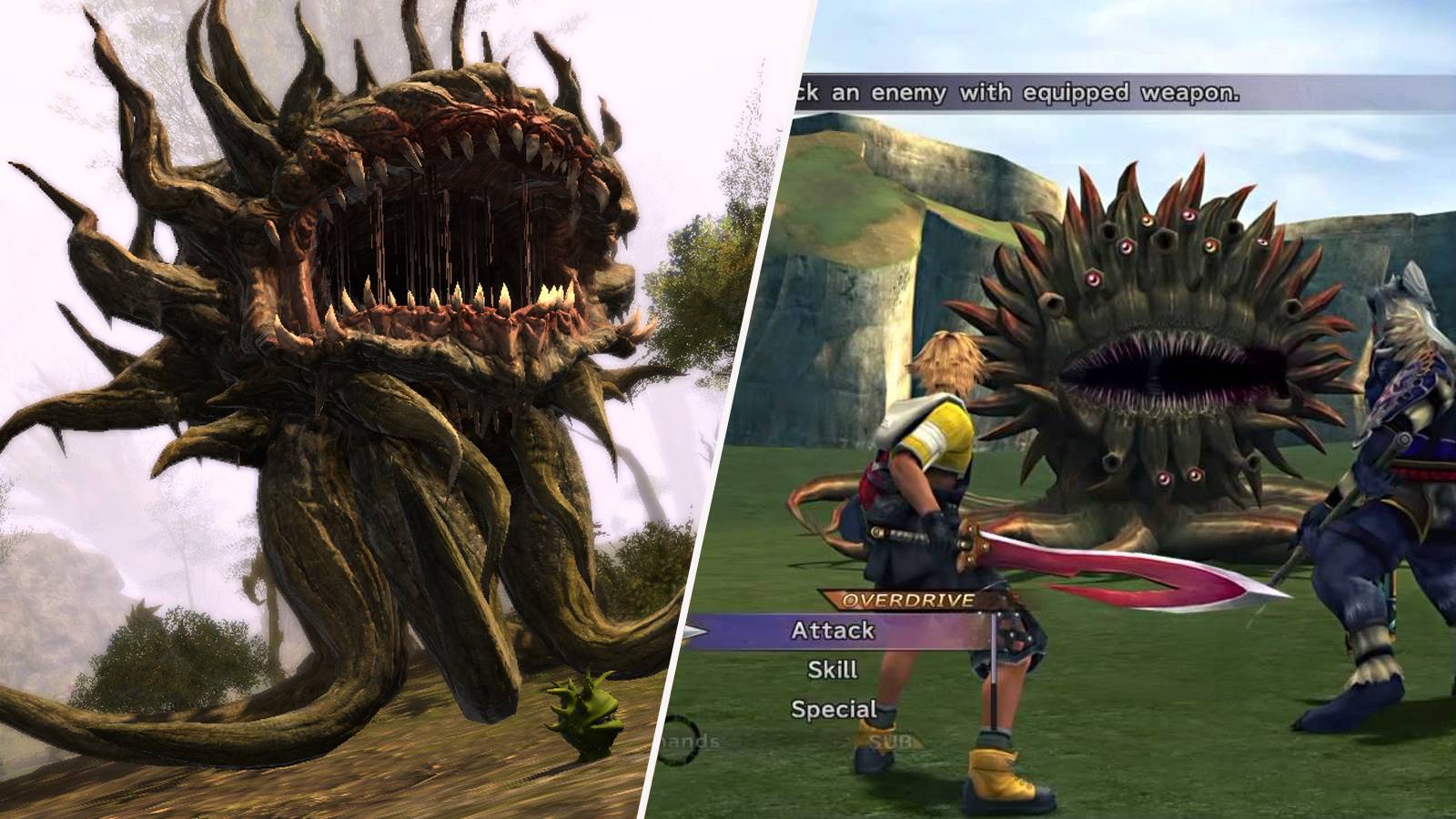 The image on the left shows Yoshitaka Amano's design of the Malboro for Final Fantasy II and the image on the right is one of the monster's more recent representations from Final Fantasy XIV. It's clear to see that the modern Malboro aesthetic is still very similar to its initial design.