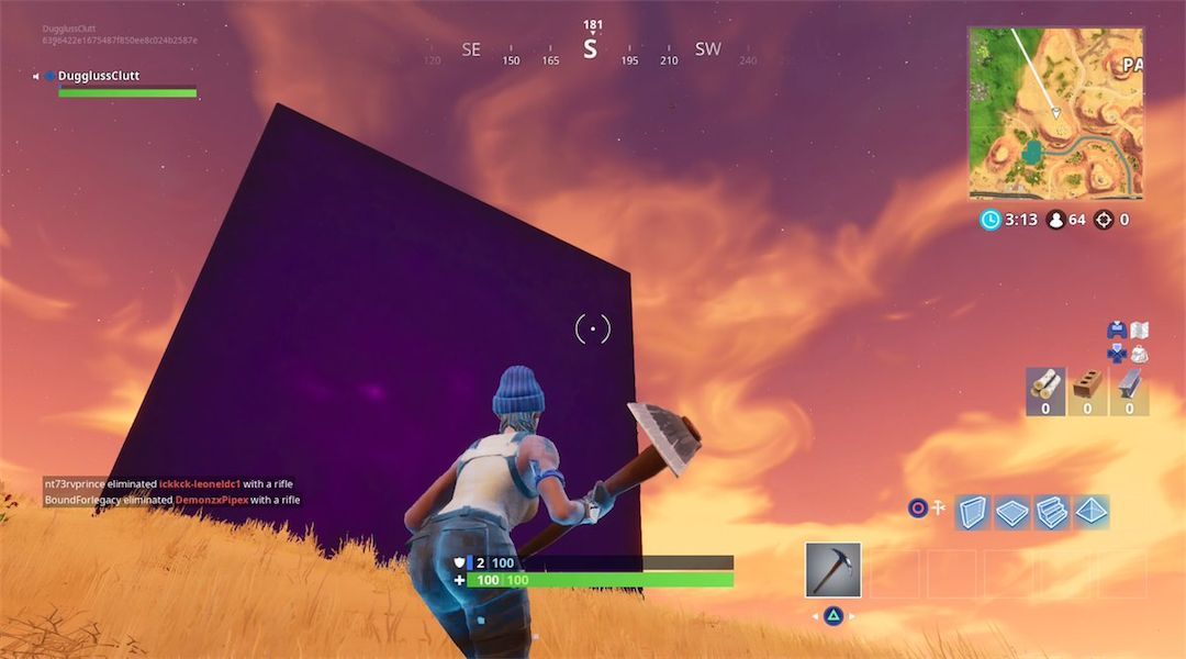 After the appearance of the purple cube within Fortnite's popular Battle Royale mode, many players attempted to interact with it to see what it would do. A Reddit user named Gsonicify and his buddies actually managed to glitch inside the cube after landing on it and continually striking the top of it with a pickaxe. From there it appeared they had fallen through the map but moving around revealed the dark space was actually resting on top of the Paradise Palms map. Using a created staircase, the duo were able to reenter the cube at will until another user came in and took them out.