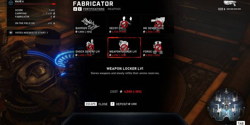 Horde Mode is inherently a defensive kind of game mode, but Gears 5 switches things up by encouraging players to be more aggressive. The main way this is accomplished is through the introduction of Power Taps. Power Taps spawn in various places on the map, with more materializing as the game goes on. Power Taps give players benefits like having more power to spend in the Fabricator, and so it's in their interest to protect them. This in turn encourages players to expand their base of operations, and eventually the maps turn into death zones of barricades and turrets everywhere.