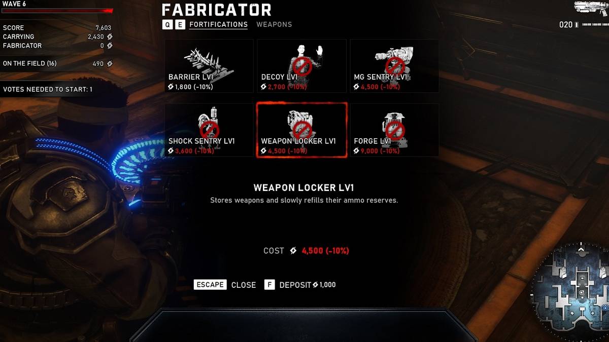 Gears 5's Horde mode shares a lot in common with Horde 3.0 that was introduced in Gears of War 4. Like that game, players need to build their defenses around the Fabricator machine that they can put anywhere on the map. The Fabricator is used to purchase new weapons and ammo, in addition to fortifications that can be a huge help when it comes to surviving on the higher rounds. However, some may be confused on how exactly to upgrade Fabricator fortifications in the game.