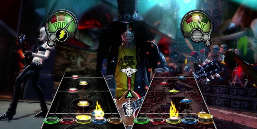 Players who engaged in Guitar Hero's guitar battle mode got a treat. Sure, it is fun to go one-on-one with a friend, rocking out together to see which one does better with a particular song. However, what made guitar battle stand out among the other modes in the Guitar Hero and Rock Band franchises as a whole was the fact that players could play against the likes of Slash, Tom Morello, Joe Perry, and more. These artists worked with Guitar Hero to record these boss battles. The mode is also fun for the fact players can use power-ups to throw off their opponents.