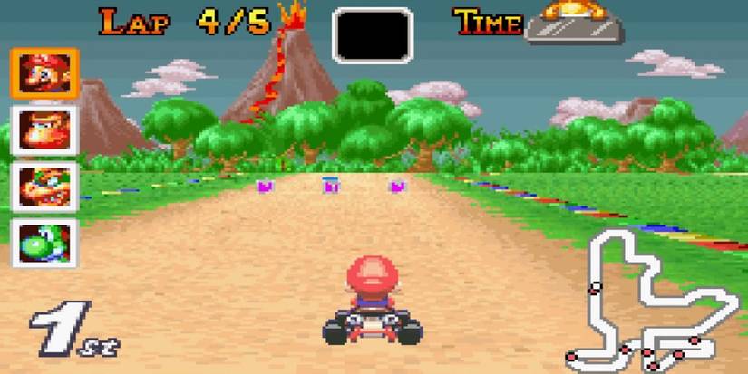 However, there are some hazards you may not have bargained for here. From the second lap onwards, those volcanoes will erupt, and you’ll have Lava Boulders to contend with. On the subject of those darn u-bends, one of them can actually send you back to an earlier part of the course if you overshoot it. These obstacles are rather easy to see coming, though.