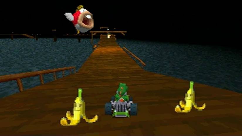 There’s no doubt that Mario Kart 64’s Banshee Boardwalk is one of the spookiest Special Cup tracks ever. This dimly lit, haunted area boasts a lot of long, narrow straights peppered with very tight turns that are almost impossible to take at speed. Not to mention those missing guardrails.