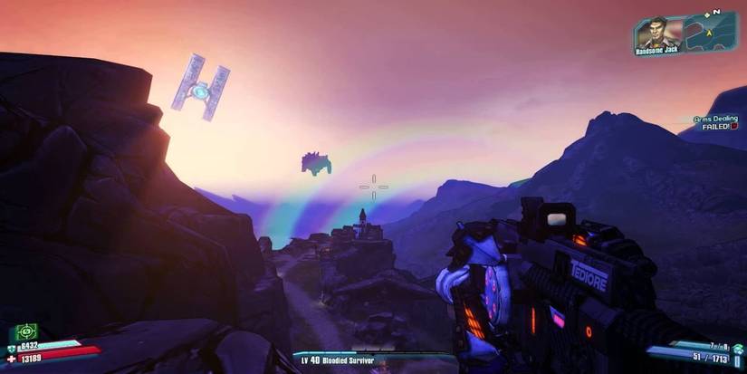BL2 is chock-full of cheeky references and easter eggs. One of the most amusing comes in the form of a certain "double rainbow," which can be found in the Highlands zone. After activating it through a Claptrap and Handsome Jack Echo message, if you look towards the sky, you'll see two rainbows, as Jack can be heard comically fawning over them.