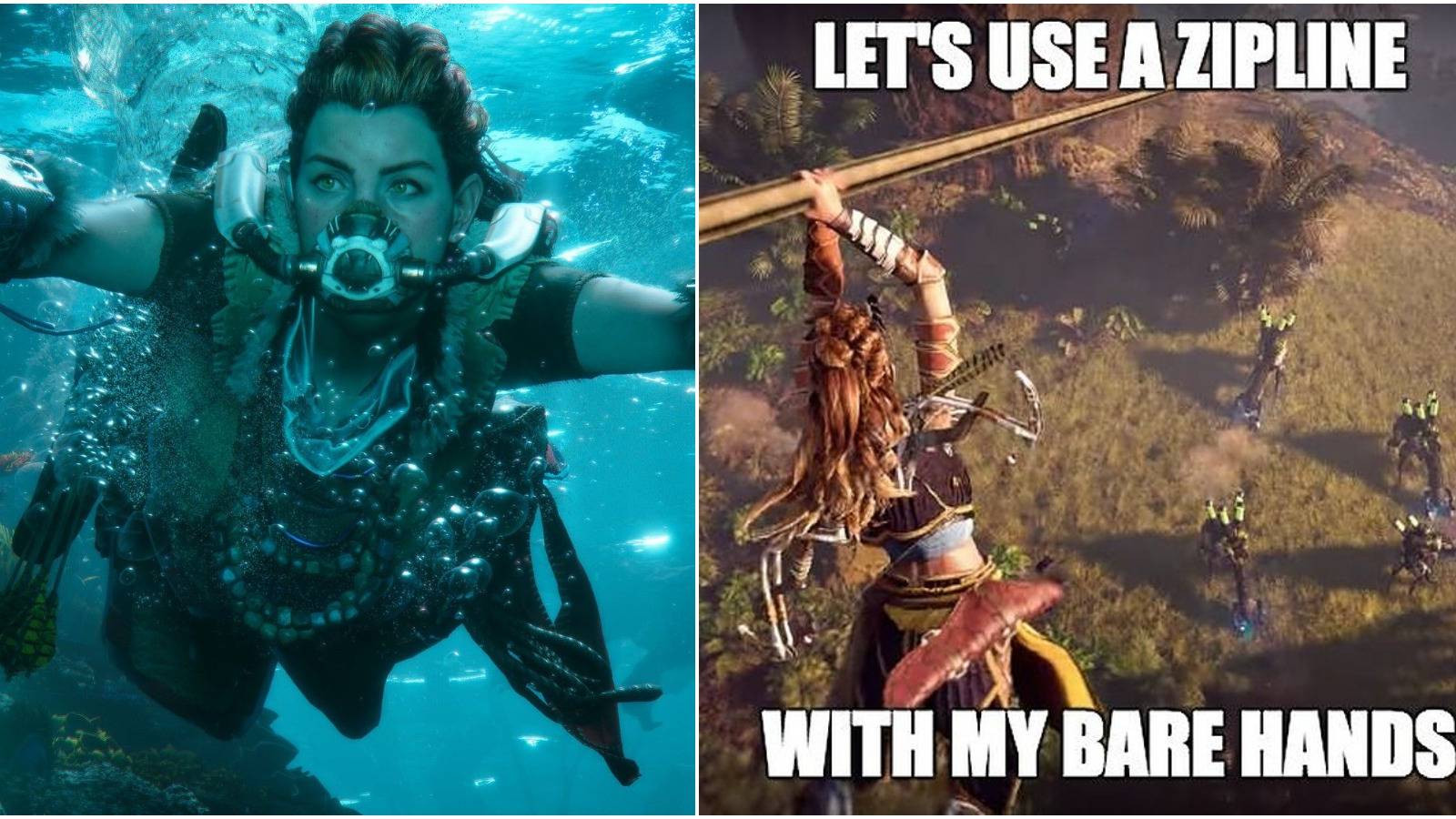 Among the pictures released for Forbidden West is one where Aloy seems to be exploring a beach. This can either be a hidden location or part of the main mission, but this meme creator's wondering about Aloy’s wardrobe choice.
