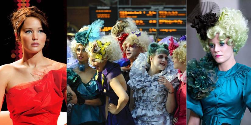 It is Cinna who tells Peeta and Katniss to hold hands during the tribute parade in the books, but in the movie, Peeta is the one to suggest it (something he says the Capital people would love). The book describes the horses pulling the chariots to be all different kinds and colors, but they are all just black in the film. Also, Effie’s name isn't even mentioned in the first film. One of the most entertaining characters in the franchise, Caesar Flickerman, is not a game announcer in the books but is in the movies. And Panem’s flag had no description in the book, but is shown throughout the movie as red with a gold design that resembles a bird of some kind.