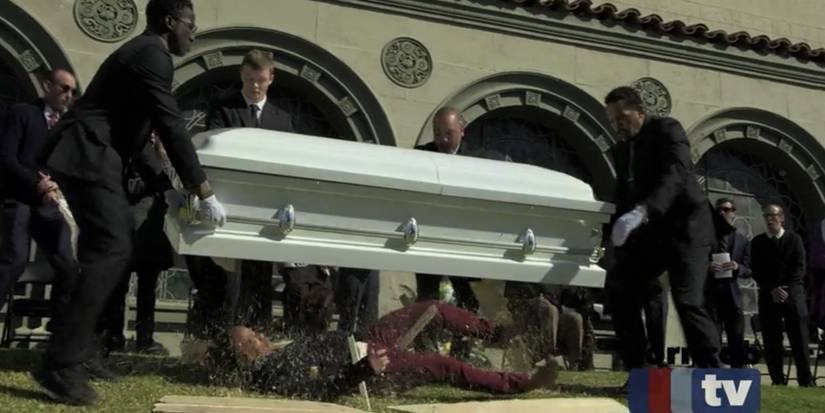 Coffin Flop will likely go down as the most iconic sketch of the season. In the first episode of Season 2, there is a brief "commercial" advertising a reality show called Coffin Flop. This sketch is exactly what it sounds like: It's a reality show about people falling out of their coffins at funerals. It's truly top-tier comedy, just because of how ridiculous it is.