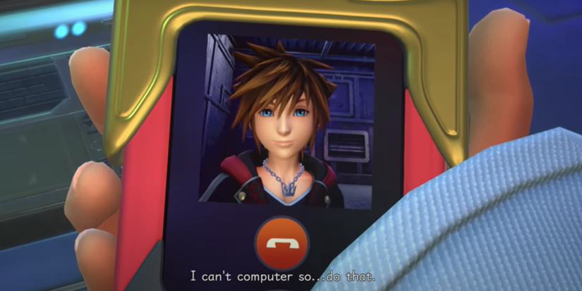 Sora is not great with technology, and as the use of computers, phones, and new tech rises in the Kingdom Hearts worlds, Sora continuously reveals that he doesn't know how to use them. When he joins up with Hayner, Pence, and Olette in Twilight Town, the crew heads to the mansion where Roxas was transported to a copy of their world. Ienzo speaks with Sora over the phone and guides Pence to reboot the main computer. "We can analyze the virtual Twilight Town while we're at it," Ienzo says before getting an enthusiastic yet confused response from Sora: "Okay! Great. I can't computer so... Do that."