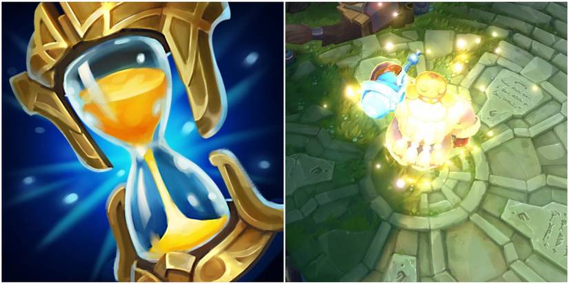 Following up Seeker's Armguard is its upgrade, Zhonya's Hourglass. Stopwatch is included here as well since every class of character can make use of the item. Stopwatch, on its own, gives absolutely no stats at a cost of 600 gold. The rune "Perfect Timing" also grants the player a free Stopwatch after a period of time. This item can be combined into a variety of items, including the famous Zhonya's Hourglass.