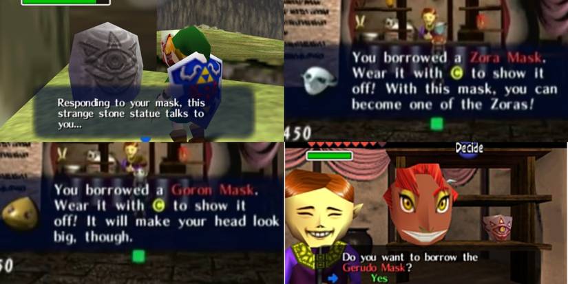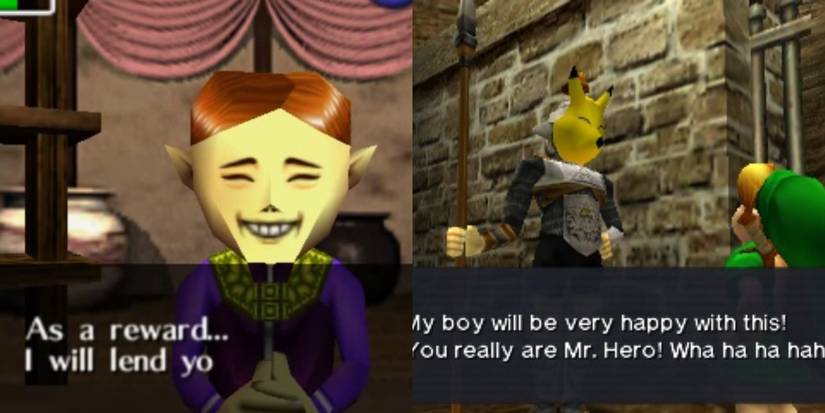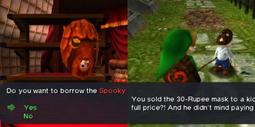 In Ocarina of Time, there are several little side quests that actually help players gain strength and special powers, and this is one of them. The creepy yet seemingly harmless Happy Mask Salesman from Majora's Mask actually originated from Ocarina of Time's happy mask side quest. He sets up shop in Hyrule's Castle Town, and offers masks to rent for free. If players make a sale, they go back to the salesman to bring him his money. The trick is that only certain characters want each mask, so Link can't just go around talking savvy to make a sale.