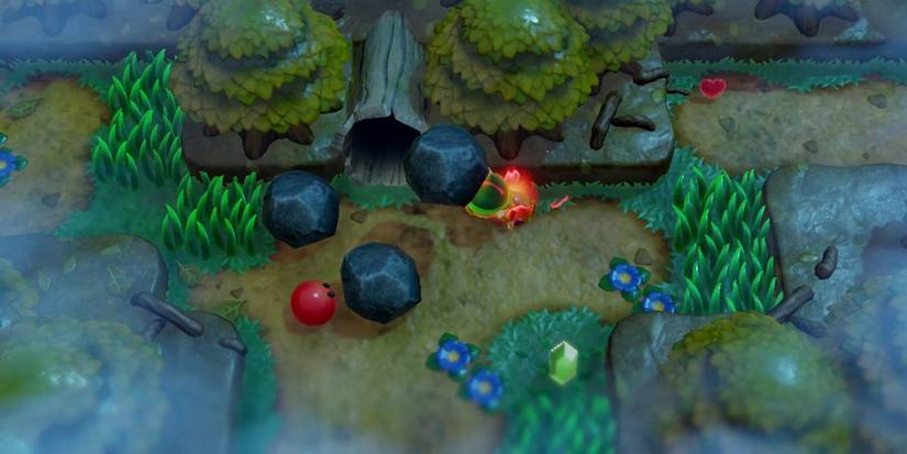 The Power Bracelet allows Link to move Boulders giving access to five more Heart Pieces. The first is in the Mysterious Forest where the player obtained a toadstool inside a series of caves. The final room of the cave is a cluster of Boulders and a Skull that block it. Another Heart Piece is in the northwest corner of Ukuku Prairie inside a cave.