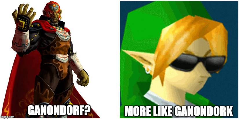 What kind of name is Ganondorf anyway? It's just Ganon with "dorf" tacked on at the end. Did Nintendo think they would fool people with that complexion and name? With a name like that, of course he turned out to be a bad guy. That and all the leather he is wearing must have irritated his skin like crazy. That getup does not look like it breathes. This cool Link meme is spot on.