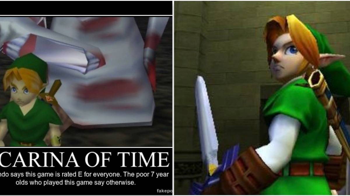 Ocarina of Time was made for everyone in mind hence the rating. There is no cussing, or blood, but that’s not to say it can’t be a complete horror show.