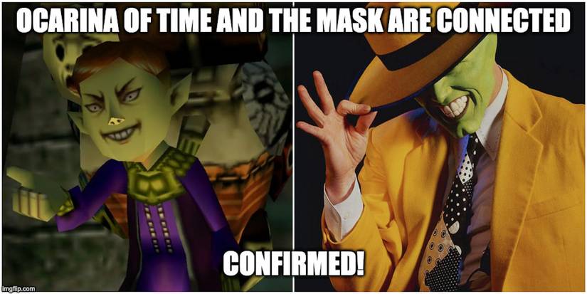 It’s all right there in the meme. Ocarina of Time is connected to the film, The Mask, thanks to the Happy Mask Salesman. Putting on a mask is creepier in Majora’s Mask admittedly and shares more of that vibe from the film, but the joke still works for this N64 classic as well. There is something not right about the salesman.