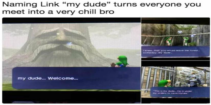 Changing Link’s name to a plethora of titles can make any entry in this franchise more enjoyable. Calling him something as simple as Zelda can even be funny. Using My Dude as a title is just perfect as this meme points out though. What a chill game this turned out to be. It’s more like The Legend of the Big Lebowski now.