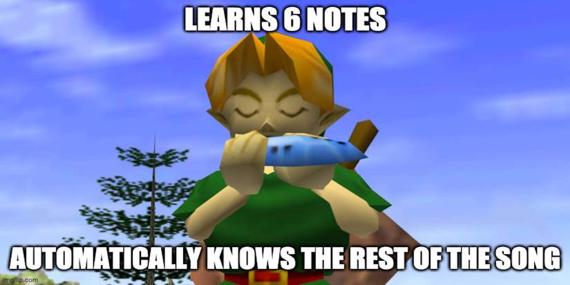 Something that has never made sense in these games is Link’s sudden ability to become a musician. He learns a few notes, plays them, then jams out as if that is ever enough to make the music he is piping out.