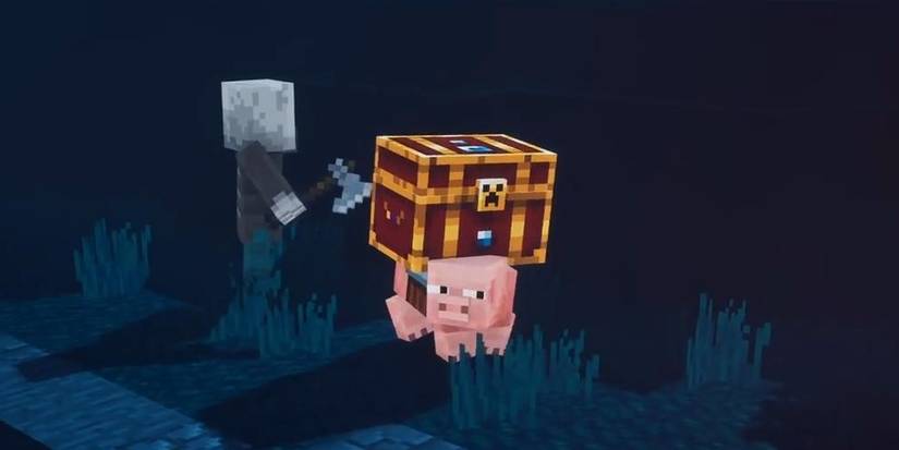 Quite possibly one of the fandom's favorite additions to the franchise with the release of Minecraft Dungeons is the elusive Piggy Bank. This is a pig with a chest strapped to its back that has a rare chance of appearing in a level. It will be stationary until you get too close or attack it, at which point it will attempt to run away and can disappear entirely if not caught.