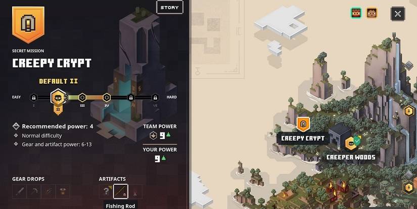 Minecraft Dungeons is full of secrets, in particular - secret levels. One of the entrances to a hidden level is located inside of Creeper Woods. Make sure you explore all path ends that lead to the west and when you see a stone wall with two Redstone bricks adorning it, you've reached your goal.