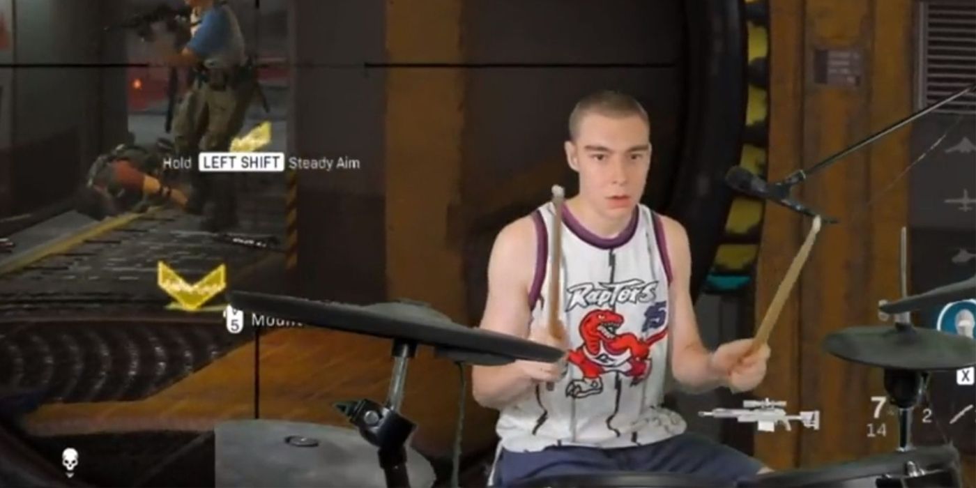 This streamer has quickly been gaining acclaim for playing the competitive online shooter Modern Warfare with nothing but a drumset. After rebinding all the controls to varying parts, he has found a way to have full control over his character using pedals, drum heads, and cymbals.