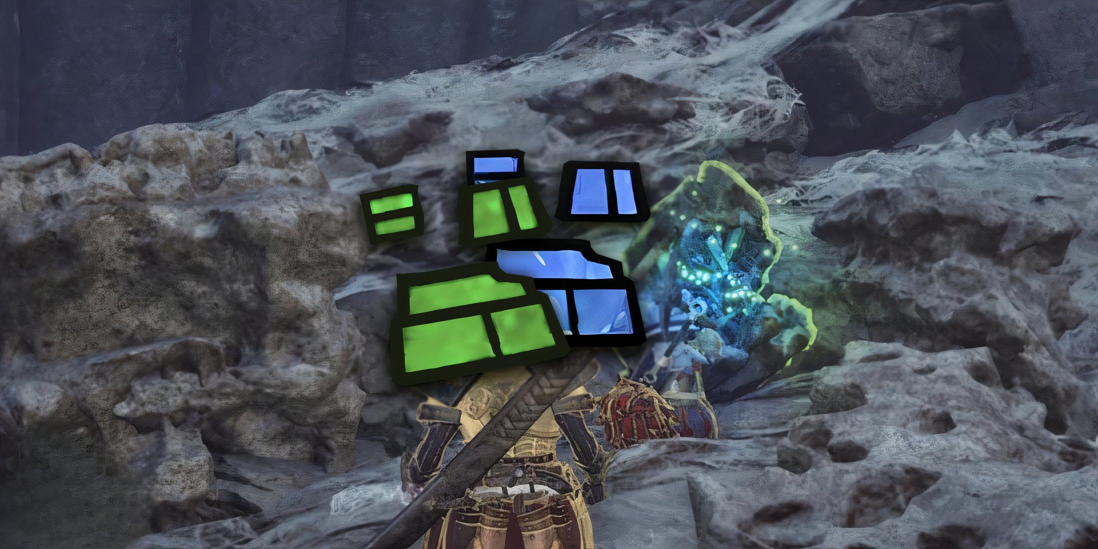 These are both materials you'll need to upgrade weapons through the ore tree and are also worth farming. Whenever you pass a Mining Outcrop, be sure to interact with it multiple times as they usually have three or four materials at once. These outcrops respawn every fifteen real-world minutes, so you can keep coming back and farming just a few select locations if that works easiest for you. Mining Outcrops are marked as blue rock icons with a question mark in the middle.