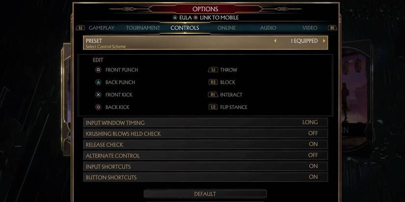 Players who want to get good in Mortal Kombat can do the same. They should tinker with the Controls in the Options menu to make a control scheme they're comfortable with. Options like Krushing Blows Held Check, Alternate Controls, and Release Checks can make the difference in Kombat, so players should test these settings.
