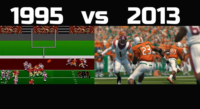 The difference in graphics from 1995 to 2013 were astonishing. Also considering the file size of games like the new Star Wars Jedi: Fallen Order are absolutely massive and can take hours to download all of the content. The new NCAA Football games could be twice as large considering all of the players' stats and potential, and it'll be interesting to see how they evolve.