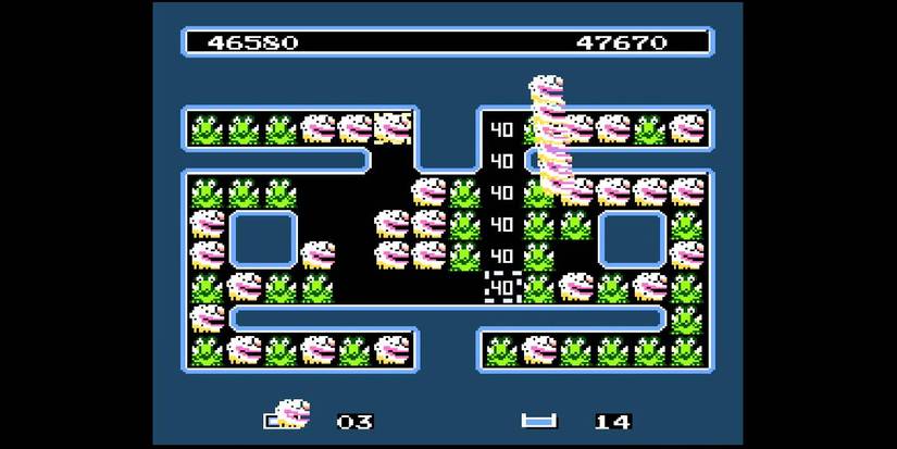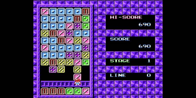 In this blatant rip-off of Tetris, the player controls different colored pills as they fall towards the bottom of the play area – which is shaped like a pill bottle. The player can rotate these pills, and the goal is to match four sections of the same color into a column or row.