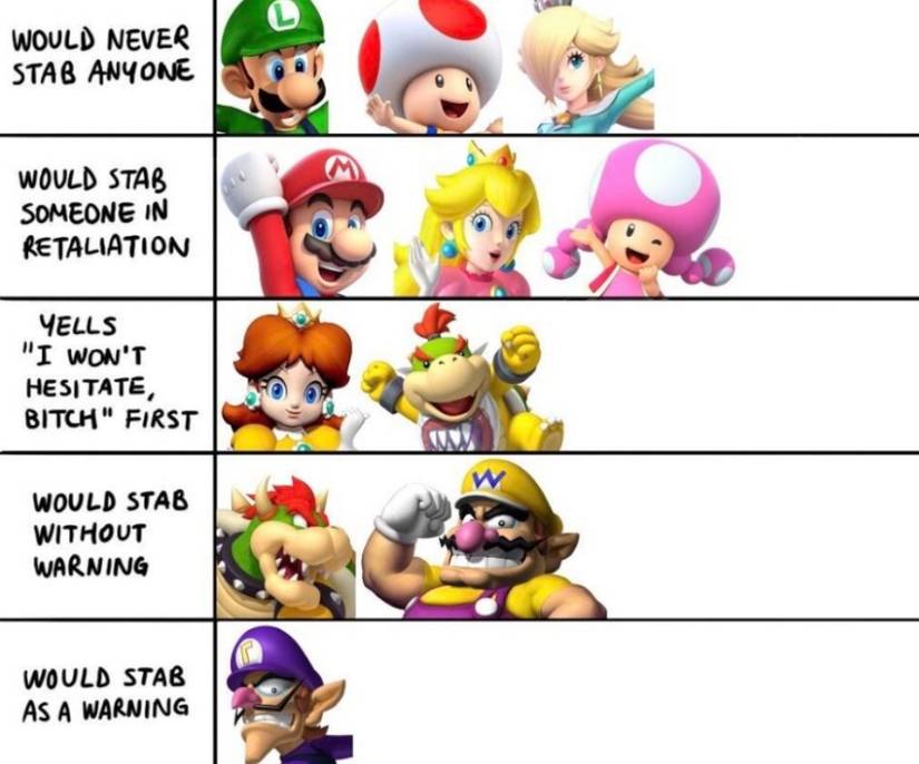 Would Waluigi stab someone as a warning? Well, he might try, although his track record suggests the attempt may backfire.