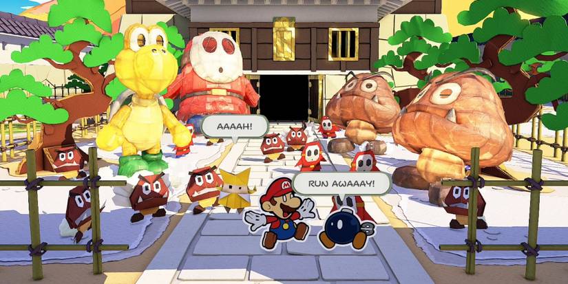 Throughout the game, every enemy Mario and Olivia deal with was created by Olly. Early on, our heroes just have to deal with simple origami creatures like Goombas. However, this evolves in later parts of the game as players are introduced to Paper Macho characters and various tools that are used for origami, such as scissors and colored pencils.