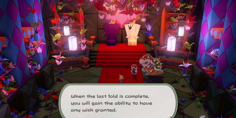 From there, everything in the castle has been refolded into something new, including Princess Peach, who became a circle top window that hangs over the throne.