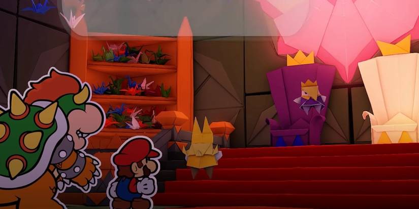 Princess Peach is introduced early in the game in her origami form, which is assumed to be what King Olly has turned her into. Olly uses her early as a recruiter and as a bait for the origami army. However, the princess outlasts her usefulness after the castle officially transforms into Olly's new home.