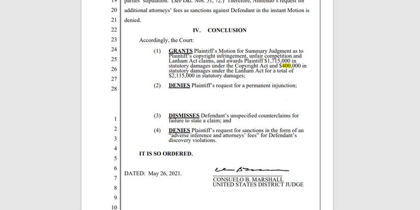 While it's an exorbitant amount of money, Storman will only be paying less than half of what Nintendo originally sought, not including the 28 trademark infringements that could have skyrocketed the statutory damages. As it stands, Storman has been ordered to pay $2,115,000 to Nintendo of America, a stern warning to those wanting to host pirated Nintendo games.