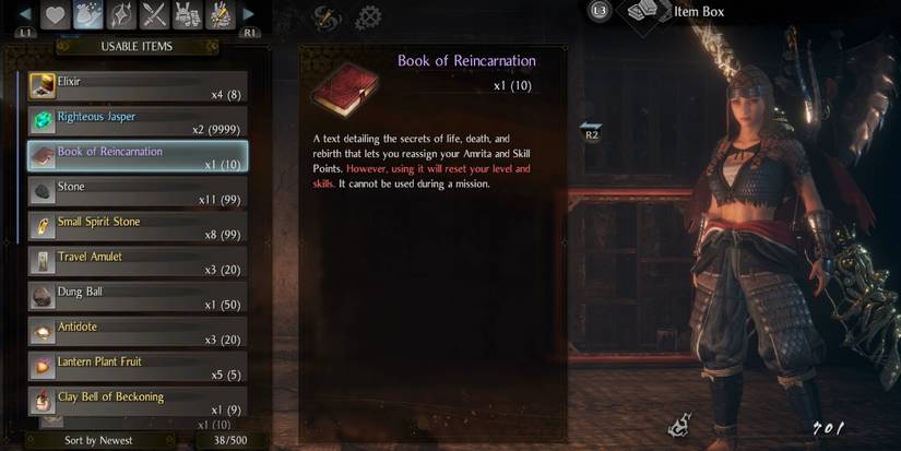 In fact, players can then purchase the Book of Reincarnation from them for 10,000 Gold. Doing this will reset all your skill points and Amrita used when leveling up, allowing you to make a different build or set things right.