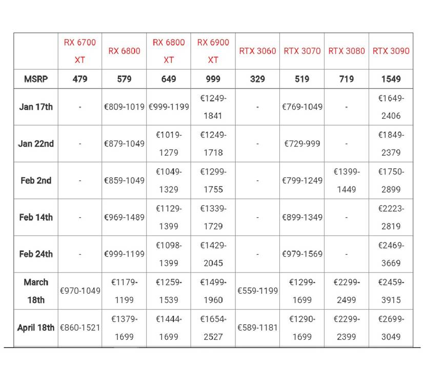 PC gamers have been paying exorbitant prices for GPUs since they became useful in the cryptomining trade and a recently surfaced chart reveals just how much Nvidia RTX cards have skyrocketed in Europe.
