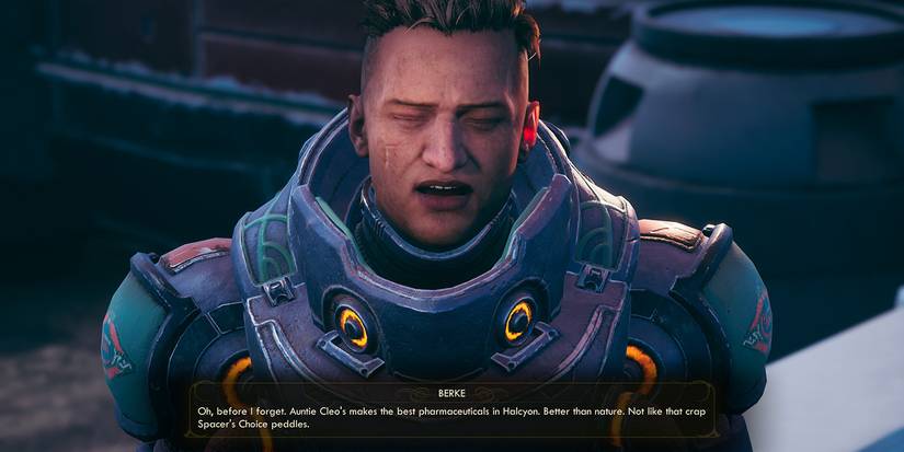 Funnily enough, both Spacer's Choice and Auntie Cleo's are relevant to this next entry, in the fact that they hate each other. It turns out, these two conglomerates are rivals. The first person we talk to outside of Phineas in the tutorial is a Spacer's Choice soldier who has to make sure we're not with Auntie Cleo's before allowing us to give him first aid!