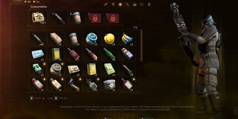 That said, there are just too many! Even when running a character with high Medical who could use all 4 inhaler slots, we found ourselves buried in Consumables we would never use. So, for new players, unless you're on Supernova, feel free to sell whatever consumables you think aren't worth holding. Though we do recommend people hold onto anything that gives a temporary buff to body or mind attributes.