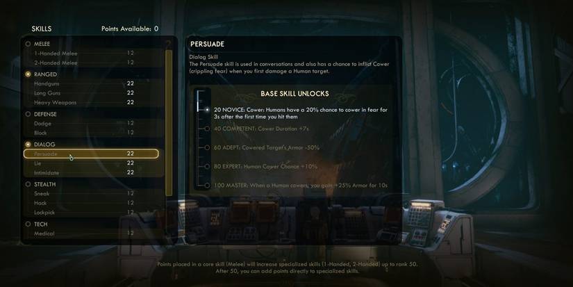 Because of that, there's really not much reason to get any skill to 100. The 100-level perks are nice, but nowhere near as insane as the Fallout games, and players are rewarded much more for using those points on getting all their skills to at least 50.